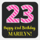 Sticker Carré Fun Pink Stripes "23" : Joyeux 23ème anniversaire