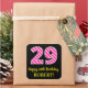 Ce joyeux autocollant carré sur le thème de l'anniversaire présente un grand numéro "29", avec un motif rose clair et rose foncé rayures. Il comporte également le message "Joyeux 29e anniversaire", et un nom personnalisable. L'arrière - plan est noir de couleur. Des autocollants joyeux, amusants et personnalisés comme celui-ci peuvent être donnés comme cadeau d’anniversaire, utilisés lors de l’emballage de cadeaux, ou peut-être utilisés comme décoration de fête d’anniversaire pour célébrer le vingt-neuvième anniversaire de quelqu’un. [~Z0000578]