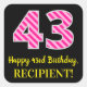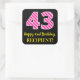 Sticker Carré Fun Pink Stripes “43”: Happy 43rd Birthday + Name