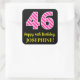 Ce joyeux autocollant carré à thème d'anniversaire présente un grand numéro "46", avec un motif rose clair et rose foncé rayures. Il comporte également le message "Joyeux 46ème anniversaire", et un nom personnalisable. L'arrière - plan est noir de couleur. Des autocollants amusants, joyeux et personnalisés comme celui-ci peuvent être donnés comme cadeau d’anniversaire, utilisés lors de l’emballage de cadeaux ou de cadeaux, ou peut-être utilisés comme décoration de fête d’anniversaire pour célébrer le 46e anniversaire de quelqu’un. [~Z0000578]