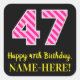 Sticker Carré Fun Pink Stripes “47”: Happy 47th Birthday + Name