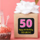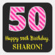 Sticker Carré Fun Pink Stripes "50" : Joyeux 50ème anniversaire