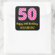 Ce joyeux autocollant carré à thème d'anniversaire présente un grand nombre de "50", avec un motif rose foncé et rayures rose clair. Il comporte également le message "Joyeux 50e anniversaire", et un nom modifiable. L'arrière - plan est noir de couleur. Des autocollants amusants et personnalisés comme celui-ci peuvent être donnés comme cadeau d’anniversaire, ou utilisés lors de l’emballage de cadeaux, ou peut-être utilisés comme décoration de fête d’anniversaire pour célébrer le cinquantième anniversaire de quelqu’un. [~Z0000578]