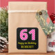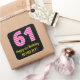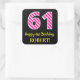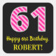 Ce joyeux autocollant carré sur le thème de l'anniversaire présente un grand numéro "61", avec un motif rose foncé et rayures rose clair. Il comporte également le message "Joyeux 61e anniversaire", et un nom personnalisé. L'arrière - plan est noir de couleur. Des autocollants joyeux, amusants et personnalisés comme celui-ci peuvent être donnés comme cadeau d’anniversaire, ou utilisés lors de l’emballage de cadeaux, ou peut-être utilisés comme décoration de fête d’anniversaire pour célébrer le soixante et unième anniversaire de quelqu’un. [~Z0000578]