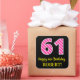 Sticker Carré Fun Pink Stripes "61" : Joyeux 61ème anniversaire