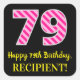 Sticker Carré Fun Pink Stripes "79" : Joyeux 79ème anniversaire
