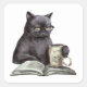 Sticker Carré Funny Black Cat Book Lover Bookworm Coffee Lecture