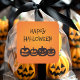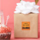 Les autocollants montrent quatre citrouilles sculptés d'affilée et "Happy Halloween" en police de caractères en détresse ci-dessus. L'arrière - plan est orange et les autres éléments sont noirs. Amusant, cool et éffrayant jack ou lanternes. Un produit dans une suite de fête d'Halloween. Utilisation sur enveloppes, papier, courrier, cadeaux, sacs de butin.