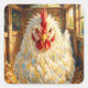 Sticker Carré Funny Close Up of Impasto Chicken that looks Mad