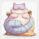 Objectifs de détente totale ! Ce chat de dessin animé dodu et duveteux est recroquevillé dans un confort total sur un sac géant de chips, capturant parfaitement l'énergie d'une journée paresseuse. Avec des teintes pastel de rose pâle, de bleu bébé et un masque de sommeil violet brillant poussé sur son front, ce félin endormi dégage une satisfaction suffisante. Les courbes douces, les lignes audacieuses et les textures douces créent une illustration de style autocollant à la fois cosy et comique. Placé sur un fond blanc propre pour le contraste, ce design est un must pour les amoureux des chats et les amateurs de snacks.