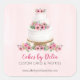 Un gâteau de mariage blanc décoré de jolies fleurs aquarelles roses est posé sur un support sur fond lavis aquarelle rose pâle sur cet autocollant. Excellent article promotionnel pour un décorateur de gâteaux personnalisés, professionnel ou boulanger à domicile, ou un organisateur de mariage. Disponible avec des produits assortis.