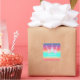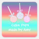 Un design sucré avec trois pâtisseries avec de petits arcs et des accents de ruban. Un arrière - plan aux teintes gaies et vives, du bleu au rose.