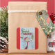 Illustration d'une fille tenant un cadeau dans une main et un oiseau dans l'autre main. Message en afrikaans.