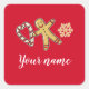 Un mignon homme en pain d'épice, un coeur de bonbons et une illustration de flocon de neige avec un modèle texte. Cliquez sur personnaliser et modifiez le texte en un nom ou un mot.