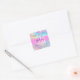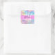 Nom monogramme irisé holographique de l'arc-en-ciel et autocollant carré initial. Votre nom personnalisé et votre monogramme sont écrits dans un élégant script écrit à la main avec un arrière - plan rose. Un cadeau d'anniversaire ou de Noël parfait !