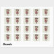 Stickers with a cute retro image featuring a whimsical girl with rosy cheeks and flowers in her hair. Carrying a green frog doll.