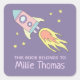 Sticker Carré Girl's Rocket Ship 'This Book Belongs' et nom