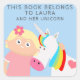 Joli dessin animé d'une fille & licorne avec texte personnalisé.