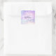 Un autocollant carré mignon et féminin avec un arrière - plan brillant rose, violet, lilas et bleu unicorne arc en ciel. Votre nom personnalisé et votre monogramme sont écrits dans un élégant script écrit à la main avec un arrière - plan de rayures de pinceau violet lilas unicorn pinceau. Un cadeau d'anniversaire ou de Noël parfait !