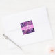 Glam abstrait violet, lilas et violet brillent de texture liquide nom monogramme et autocollant carré initial. Votre nom personnalisé et votre monogramme sont écrits dans un élégant script écrit à la main avec un arrière - plan rose. Un cadeau d'anniversaire ou de Noël parfait !