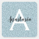 La parties scintillant argentée jaune et bleu glamour scintille le nom monogramme et l'autocollant carré initial. Personnalisez avec votre nom personnalisé dans un élégant script noir et votre initiale monogramme en blanc. Vous pouvez modifier la couleur du texte, le style et la taille de police à l'aide de l'option personnaliser.