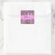 La parties scintillant violet de glam scintille le nom de monogramme blanc et l'autocollant carré initial. Votre nom personnalisé et votre monogramme sont écrits dans un élégant script écrit à la main avec un arrière - plan rose. Vous pouvez modifier la couleur du texte, le style et la taille de police à l'aide de l'option personnaliser.