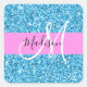 Glam and girly sky blue/ aqua and rose parties scintillant scintille le nom de monogramme blanc et l'autocollant carré initial. Votre nom personnalisé et votre monogramme sont écrits dans un élégant script écrit à la main avec un arrière - plan rose. Vous pouvez modifier la couleur du texte, le style et la taille de police à l'aide de l'option personnaliser. Un cadeau d'anniversaire ou de Noël parfait !