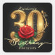 Sticker Carré Glamorous Black Gold Red Rose 30th Birthday Party