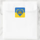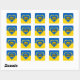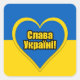 Des autocollants carrés avec le drapeau de l'Ukraine, coeur dans les couleurs ukrainiennes, et un texte disant "Gloire à l'Ukraine" en ukrainien