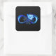 Luminous infinity symbol with glowing, beautiful, lushly blooming rose made of blue flames on black background.