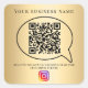 A stylish, classic faux gold background. Personalize and add your business name, your own qr code to your Instagram account inside the speech bubble and a text. Black text.