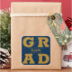 GRAD en lettres d'or gras remplit les coins de ces autocollants de carré gris arrière - plan bleu marine. Félicitations au-dessus du nom de votre diplômé et de la classe de ci-dessous. VOIR LA COLLECTION complète de combinaisons de couleurs préfaites, invitations, plaques en papier, serviettes, enseignes et plus dans notre magasin.