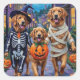 Sticker Carré Golden Retriever Halloween ou Trick-or-Treating