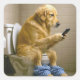Sticker Carré Golden Retriever Texting on a Toilet