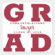 GRAD en lettres rouges crimson en gras remplit les coins de ces autocollants d'enveloppe de carré grad. Félicitations au-dessus du nom de votre diplômé et de la classe de ci-dessous. VOIR LA COLLECTION complète de combinaisons de couleurs préfaites, invitations, plaques en papier, serviettes, enseignes et plus dans notre magasin.