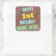 Ce design amusant d'autocollant sur le thème de l'anniversaire comporte un message comme "HAPPY 1st BANTHDAY, NAME-HERE !", où le nom peut être personnalisé. L'arrière - plan est représenté par un mur en brique composé de briques de couleur rougeâtre. Le texte du message personnalisable comporte des couleurs comme le bleu, le jaune et le vert, et il a un aspect inspiré de celui des graffitis peints. Des autocollants comme ceux-ci pourraient peut-être être donnés comme cadeau d'anniversaire, ou peut-être être utilisés comme décorations à une fête d'anniversaire pour quelqu'un qui célèbre son premier anniversaire. [~Z0000273]