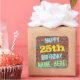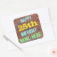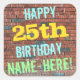 Ce design amusant d'autocollant sur le thème de l'anniversaire comporte un message comme "HAPPY 25th BIRTHDAY, NAME-HERE !", où le nom peut être personnalisé. L'arrière - plan est représenté par un mur en brique composé de briques de couleur rougeâtre. Le texte du message personnalisable comporte des couleurs comme le bleu, le jaune et le vert, et il a un aspect inspiré de celui des graffitis peints. Des autocollants comme ceux-ci pourraient peut-être être donnés comme cadeau d'anniversaire, ou peut-être être utilisés comme décorations à une fête d'anniversaire pour quelqu'un qui célèbre son vingt-cinquième anniversaire. [~Z0000273]