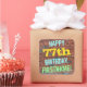 Ce design amusant d'autocollant sur le thème de l'anniversaire comporte un message comme "HAPPY 77th BIRTHDAY, FIRSTNAME!", où le nom peut être personnalisé. L'arrière - plan est représenté par un mur en brique composé de briques de couleur rougeâtre. Le texte du message personnalisable comporte des couleurs comme le bleu, le jaune et le vert, et il a un aspect inspiré de celui des graffitis peints. Des autocollants comme ceux-ci pourraient peut-être être donnés comme cadeau d'anniversaire, ou peut-être être utilisés comme décorations à une fête d'anniversaire pour quelqu'un qui célèbre son soixante-dix-septième anniversaire. [~Z0000273]