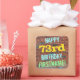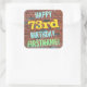 Ce design amusant d'autocollant sur le thème de l'anniversaire comporte un message comme "HAPPY 73rd BIRTHDAY, FIRSTNAME!", où le nom peut être personnalisé. L'arrière - plan est représenté par un mur en brique composé de briques de couleur rougeâtre. Le texte du message personnalisable comporte des couleurs comme le bleu, le jaune et le vert, et il a un aspect inspiré de celui des graffitis peints. Des autocollants comme ceux-ci pourraient peut-être être donnés comme cadeau d'anniversaire, ou peut-être être utilisés comme décorations à une fête d'anniversaire pour quelqu'un qui célèbre son soixante-treize anniversaire. [~Z0000273]
