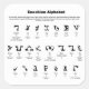 L'alphabet Enochian avec les formulaires de lettre, les noms de lettre, les équivalents anglais et la prononciation des noms de lettre (prononciation dans les guillemets si différente de l'anglais). Les lettres Enochian dans ce graphique sont lues de droite à gauche, comme écrit dans le journal de John Dee.