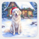 Sticker Carré Great Pyrenees Snowy Mountain Lodge Santa Hat