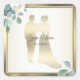 Sticker Carré Green Leaves Flower Golden Frame Wedding Party