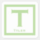 Sticker Carré Green Personnalisé Initial et Nom. Parfait pour un thème de fête pour enfants, Retour à l'école étiquettes, organisation, célébrations, fêtes et plus encore. Coordonner les éléments et autres couleurs disponibles.