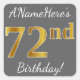 Sticker Carré Grey, Faux Gold 72e anniversaire + Nom personnalis