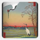Image ancienne peinte de deux grues un ruisseau et des cerisiers.