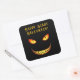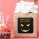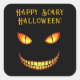 Des yeux effrayants et un sourire fou en jaune et orange sur arrière - plan noir. Un autocollant parfait pour tout cadeau à l'heure d'Halloween.