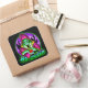 Sticker Carré Halloween Éffrayant Green sorcière magique Casquet