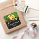 Cet autocollant amusant et éffrayant présente de mignons monstres Frankenstein à côté d'une maison hantée. Dans l'arrière - plan est une pleine lune avec des chauves-souris et un ciel de nuit vert avec des étoiles. Le texte combine les polices décoratives et serif pour un look élégant et moderne. C'est parfait pour une fête d'anniversaire à thème Halloween.