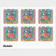 STICKER CARRÉ HALLOWEEN FLAMANT ROSE ROSE & CHAT NOIR EN CITROUI