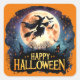 Sticker Carré Halloween joyeuse - Sorcière en vol Broom